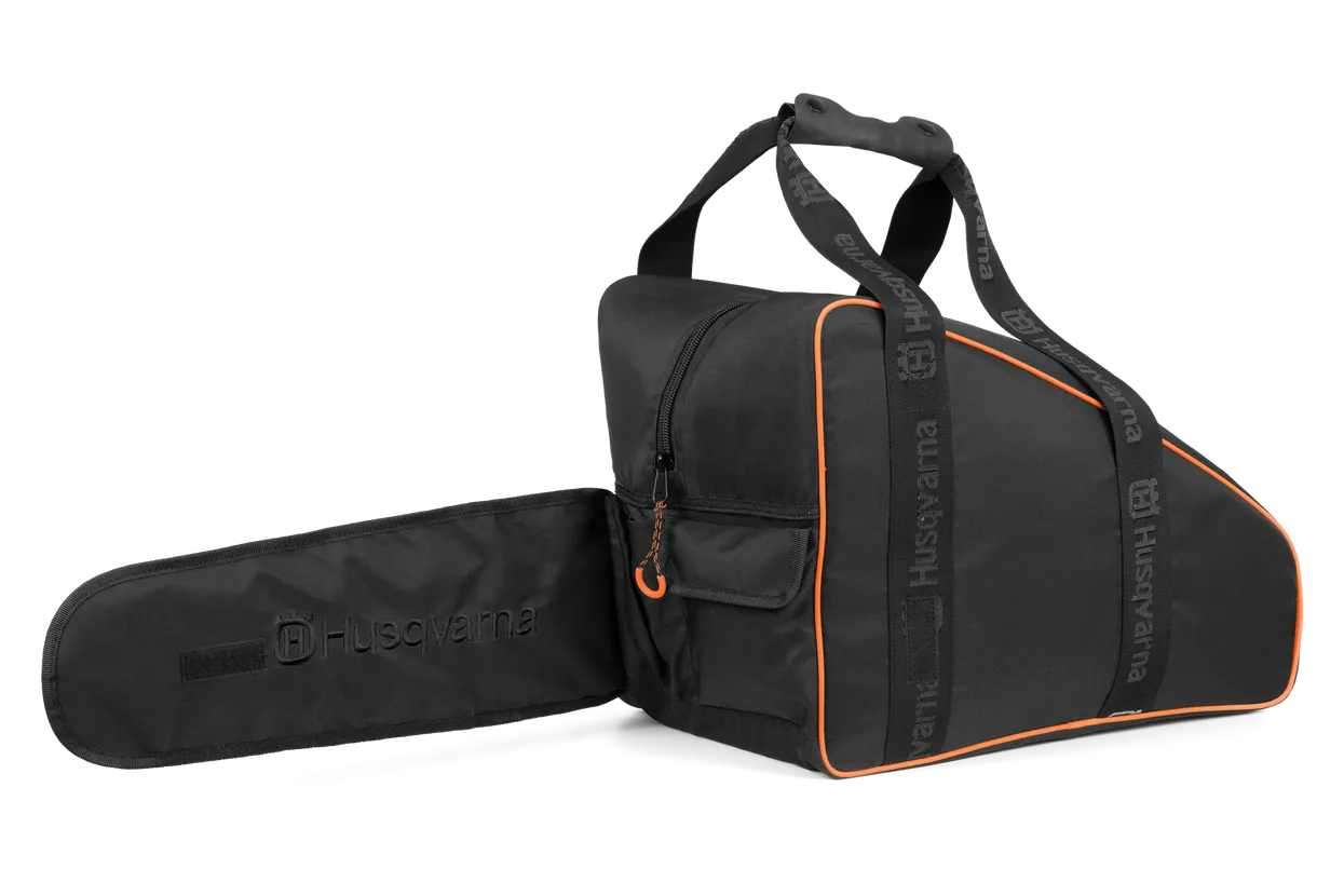 Questa borsa è realizzata appositamente per la vostra motosega. Tasche speciali per le lime della motosega e una tasca di fissaggio con chiusura in velcro sull’esterno. Adatta per motoseghe da fino a 90 cc (lunghezza barra: fino a 18”). Realizzata con bottiglie in PET riciclate. Colore: nero/arancione